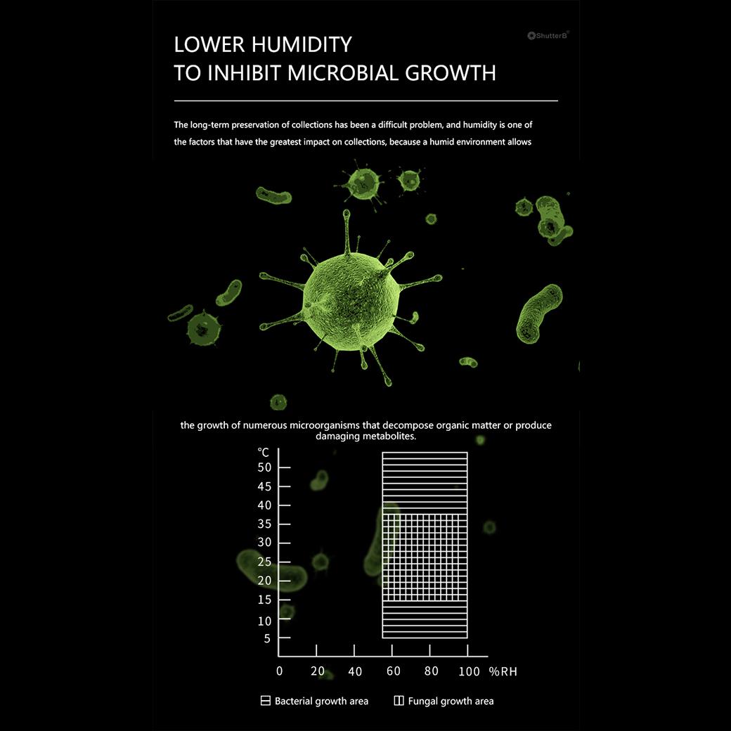 • ควบคุมความชื้น 25% ~ 65%RH