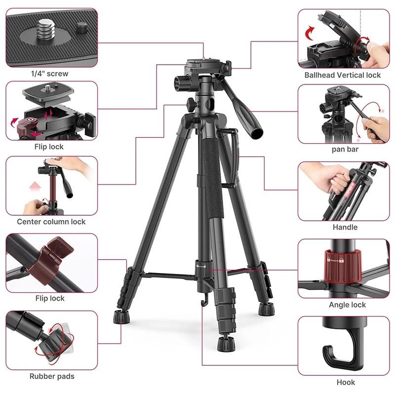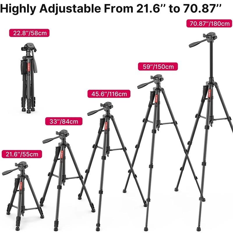 - ตัวขาตั้งสามารถหดได้สั้นสุดที่ 58 เซนติเมตร และสามารถกางได้สุงสุดที่ 180 เซ็นติเมตร