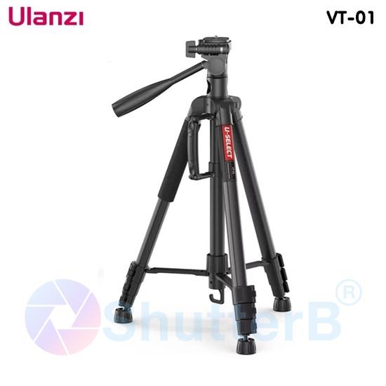 - Ulanzi VT-01 เป็นขาตั้งรองรับการใช้งานถ่ายภาพนิ่งและวีดีโอ ตัวขาวัสดุเป็น Aluminum alloy ส่วนหัวบอลวัสดุเป็น ABS แข็งแรงทนทาน